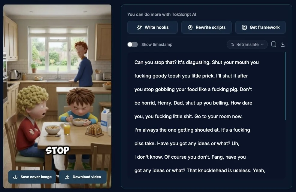 i built a channel from zero and i'm already at a couple thousand dollars. my first video hit 500k views. the channel was in the creator rewards program within 6 days. i've monetised multiple accounts using this system and i'm ready to spill all the fucking sauce without gatekeeping anything. here's the a-z process: how claude writes the full script, how to create the images with nano banana, how to animate everything with seedance, and how to turn views into guaranteed money I. idea ai generated 3d cartoon animations of well known characters in adult situations. heavy swearing, controversial storylines, millions of views. the uk accounts were already printing views with peppa pig and horrid henry. but nobody had touched american cartoons. i asked myself: how do i do my own version of this? spongebob was the obvious answer. most recognised american cartoon ever made, built in character dynamics that write themselves, toxic workplace storylines that resonate with every young american, and zero competition when i started. i'm not building from scratch. i'm remixing what's already printing views but for an audience nobody was targeting yet. i picked spongebob specifically because the characters already have distinct personalities, the bikini bottom setting gives endless location variety, and the us audience unlocks premium cpm rates that the uk niche can't touch. save this article. come back anytime. II. target US tiktok audience your audience needs to be US-based. this is non-negotiable for monetization. factory reset a spare iPhone and remove the sim set language and region to USA create a US apple id using a virtual number buy shadowrocket ($3) for proxy routing grab an ISP proxy from iproyal (SOCKS5) check your IP quality on ipqualityscore.com create a fresh proton/outlook email and sign up for tiktok check that your for you page shows us content and tiktok shop available. III. train claude to write viral scripts scripts run through claude. one dedicated chat per channel. don't mix channels in the same fucking conversation. download 10 transcripts from the most viral competitor ai cartoon videos using tokscript.com: paste them all into claude and tell it to reverse engineer why each one went viral. the hook structure, the pacing, the controversy, the character dynamics. now each script claude writes sounds like those transcripts because it studied them from day one the formula claude follows for each video: hook: something shocking happens from the first frame with zero context. no build up. you drop the viewer into chaos. they freeze and that freeze is watch time. build the story backwards from this moment. reaction and escalation: characters react and the conflict develops. mr krabs saying something diabolical about money, patrick doing something stupid, spongebob catching someone doing something they shouldn't be doing. viewers flood the comments. chaos peaks: the conflict escalates to maximum chaos. the most diabolical moment in the video. different location for each scene. don't repeat the same setting twice in a row. twist or payoff: an unexpected turn that nobody saw coming. this drives rewatches. punchline ending: each video ends with patrick saying something clueless or mr krabs doing something shameless. hook types that work: someone walking in on something shocking. someone getting caught red handed. someone screaming mid argument with zero context. a confrontation in full chaos. someone doing something unhinged. language rules: always use: bro, fam, deadass, no cap, faxx, ion know, finna, lowkey, for real, say less, gang, bread (money), built different, cooked, caught in 4K never use "nigga" instant tiktok ban. no uk slang either. no bloody, mate, innit, dodgy. this channel needs american audience only. IV. creating images with nano banana pro step 1: generate each character on a pure white studio background before touching any scenes. this locks the design so every scene stays consistent. modern cinematic 3d animation style while preserving the original cartoon aesthetic. step 2: generate each scene as a static starting frame. describe the setting based on how it looks in the show. specify where each character stands, left centre or right. describe each character's expression and body language. specify camera angle. example prompt and image below: rules: specify character positions. maximum 3 characters per scene. don't use character names, describe by appearance. keep descriptions clean and specific. end each scene prompt with this style line: pixar-quality 3d animation, polished textures, expressive faces, ultra high resolution. V. animate with seedance 1.5 pro seedance takes the starting frame and animates it into a full scene with dialogue, voices, sound effects and camera movement baked into the output. you don't have to add a separate voiceover. prompt structure: composition and framing first. character positions and subtle movements, what changes from the starting frame. numbered dialogue with full voice descriptions. camera movement. mood and atmosphere. for dialogue, describe each speaker by appearance and position, not by name. specify voice tone, accent and emotion. without this the ai gives wrong voices. maximum 2 speakers per scene. a third character can be visible but must not speak. don't describe static elements the ai sees. focus on what moves and changes. no music. camera holds still with a slow subtle zoom in. example prompt and animation below: voiceover length rules: 4 second scene = 10-15 words max. 8 second scene = 20-25 words. 12 second scene = 30-35 words. check voiceover length before writing the prompt. when adjusting, trim the voiceover not the prompt description. VI. the higgsfield credit hack seedance 1.5 pro costs 36 credits per clip at standard rate. that adds up. this is why most channels like peppa pig and horrid henry stopped posting. the generation costs killed them. they couldn't finance the AI at scale so they just quit. this hack kills 